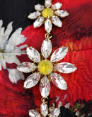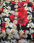 Color: Black with multicolor floral and sunflower print, gold metal detailing