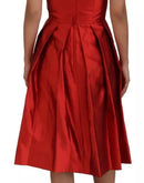 Dolce & Gabbana Red A-line Pleated Midi Satin Silk Dress