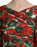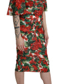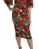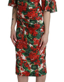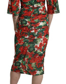Dolce & Gabbana Red Floral Sheath Midi Silk Stretch Dress