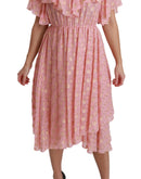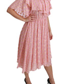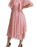 Dolce & Gabbana Silk Pink Polka Dots Pleated A-line Midi Dress