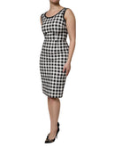 Dolce & Gabbana White Black Checkered Sleeveless Sheath Dress