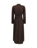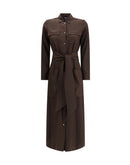 The silk Dress by Ella balances sophistication and practicality through a harmonious blend of style and lightness. Crafted from pure silk, it features a utility-inspired design with four applied pockets: two smaller ones on the chest and two larger ones on the lower part. The button-down front and classic collar lend understated elegance, while the cuffed sleeves enhance its tailored appeal. A matching scarf, separate from the dress, completes the look with a fluid and refined touch.