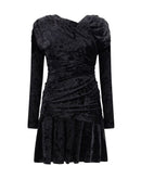 The Ruched Mini Dress by Ganni embodies femininity and modernity with its figure-enhancing silhouette. Defined by an asymmetrical neckline, long sleeves, and draped ruching along the bodice, it brings effortless elegance to any look. A versatile piece, perfect for evening occasions or as a statement addition to everyday styling.