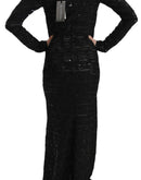 John Richmond Black Silk Full Length Sequined Gown Dress