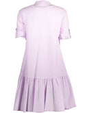 short dress, 3/4 sleeves with the possibility of rolling it up with a button, round neckline, buttons, logo