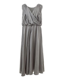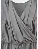 Grey silk blend crossover neckline jumpsuit dress by Lardini. Sleeveless, crossover V-neckline, elasticated waist. Wide leg, Palazzo style trousers. Composition: 51% Silk, 49% Cotton-Sku inside:23FE247