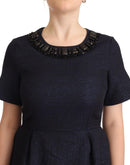 L'Autre Chose Black Embellished Short Sleeves Mini A-line Dress