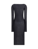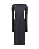 Miu Miu’s Long Jersey Dress is a piece that combines comfort and sophistication. Featuring an elegant boat neckline that enhances the neckline, this dress features long sleeves for a touch of class and versatility. The stitched logo on the front adds a distinctive and discreet detail, making the dress recognizable without sacrificing understatement. Perfect for casual occasions or casual-chic evenings, it is a versatile and sophisticated piece in every woman’s wardrobe.