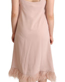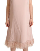 P.A.R.O.S.H. Pink Polyester Sleeveless Midi Feather Shift Dress