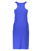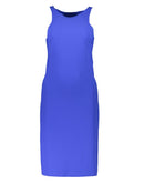 Patrizia Pepe Elegant Blue Crew Neck Dress with Logo Detail