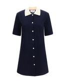 Thom Browne’s short polo Dress is made of ribbed knit and features a classic, refined design. Featuring a front button closure and polo-style collar, it is a short-sleeved style that combines elegance and comfort in a versatile, modern garment.