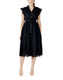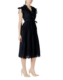 Discover the Vianglassi V-Neck S/L midi dress for women by Vila Clothes, an elegant and versatile piece made from 100% cotton. This dress features a flowing silhouette that is perfect for various occasions, from brunch with friends to a summer evening out. The V-neckline and sleeveless design add a touch of sophistication, while the waist tie accentuates the figure. The front button closure and lace detailing at the hem provide a feminine touch. Perfect to pair with sandals or heels, this dress is a must-have for any summer wardrobe.