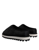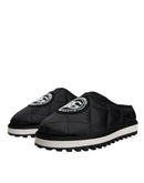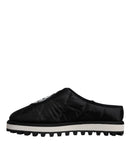 Dolce & Gabbana Black Nylon Quilted Logo Patch Sandals Slides Shoes