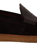 Dolce & Gabbana Brown Suede Leather Slip On Flats Moccasin Shoes