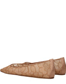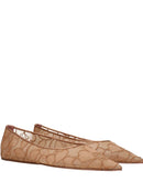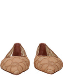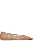 The product with MPN BARBARALACEFLATLACELATTE and code F84599 fabric in beige is a ballet flats designed by Amina Muaddi. It has features like embellishment may vary.