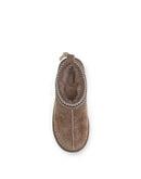 The Tasman Biarritz Mules by UGG combine comfort and style thanks to the soft suede upper, enhanced with refined details such as the mudguard, decorative stitching, back pull tab, and leather bow. The suede heel counter ensures a secure fit, while the sheepskin insole ensures softness and warmth. The sugarcane EVA outsole combines lightweight and sustainability, complemented by a woven label with the UGG logo on the insole.