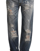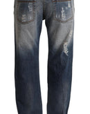 Acht Blue Tattered Mid Waist Straight Denim Cotton Jeans