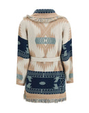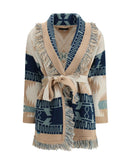 The Icon Jacquard Cardigan by Alanui is a timeless piece crafted for comfort, travel, and effortless style. Featuring the signature Icon fit and the brand’s iconic Alanui Pattern, it is meticulously made from pure cashmere using an intricate double jacquard knit. Finished with a two-tone tie belt and multicolored fringed edges, this luxurious cardigan embodies Alanui’s spirit of relaxed sophistication and artisanal craftsmanship.