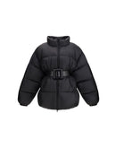 The hourglass belted short Down Jacket by Balenciaga interprets the brand’s sculptural and contemporary aesthetic. Made of lightweight technical fabric, the garment features a silhouette defined by its hourglass construction and high collar that elegantly frames the profile. The front zipper closure and side zipper pockets integrate functionality and essential design, while the wide belt with square buckle emphasizes the waist, enhancing the balance between shape and structure. A garment that combines lightness, volume and architectural identity in a bold and refined expression of style.