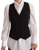 Dolce & Gabbana Black Button Down Sleeveless Vest Polyester Top