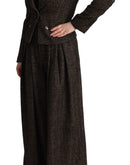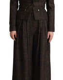 Gorgeous brand new with tags, 100% Authentic Dolce & Gabbana cropped blazer jacket with wide leg trousers crafted from wool blend features a long sleeves and button closure.