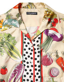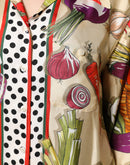 Dolce & Gabbana Multicolor Vegetables Silk Long Sleeves Top