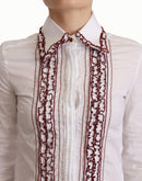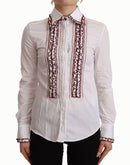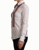 Dolce & Gabbana White Cotton Lace Long Sleeves Ruffle Collar Top Shirt