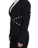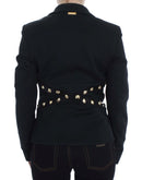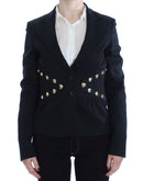 Exte Black Cotton Stretch Gold Studded Blazer Jacket