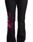 Exte Black Cotton Stretch Mid Waist Cotton Flared Denim Jeans