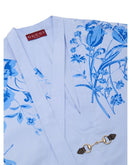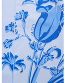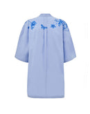 Light Blue Cotton Poplin Kimono Shirt with Gucci Flower Print.