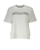 Unleash the essence of bold sophistication with Patrizia Pepe’s exquisite short sleeve T-shirt. Meticulously crafted from premium organic cotton, this dazzling white tee embodies contemporary allure with its sparkling rhinestone embellishments and iconic logo application. Designed for the fashion-forward individual, it’s a statement piece that speaks volumes of chic elegance.