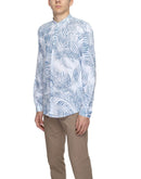 The Antony Morato SEOUL MMSL00631-FA430600 men’s long-sleeved shirt stands out for its modern and refined design, enhanced by a leaf-pattern print that adds a touch of originality and freshness to your outfit. Made from a high-quality blend of 75% cotton and 25% linen, this shirt ensures comfort, breathability, and lightness, making it ideal for spring and summer seasons. The long sleeves and mandarin collar give it a contemporary and versatile style, perfect for both casual looks and more formal occasions. The concealed button placket adds an elegant and clean detail, further enhancing the masculine silhouette.