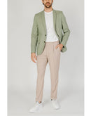 The Antony Morato BONNIE MMJS00044-FA800164 men’s suit jacket is the perfect choice for those seeking a modern and elegant look. Crafted from a high-quality blend of fabricsâ48% cotton, 30% modal, 20% polyamide, and 2% elastaneâthis jacket ensures a comfortable fit and a pleasant feel. The contemporary design features a two-button closure, flap side pockets, and a chest pocket, adding sophistication and versatility to the garment. Ideal for formal occasions, ceremonies, or business events, this jacket stands out for its refined finishes and tailored cut that enhances the male silhouette.
