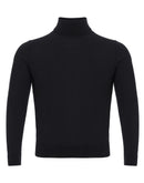 Colombo Cashmere and Silk Turtleneck in black, long sleeves, soft to the touch, micro ribbed neck work. Composition: 70% Cashmere, 30% Silk-Sku inside:24GEN33