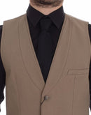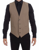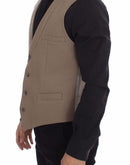 Dolce & Gabbana Beige Cotton Slim Fit Button Front Dress Vest