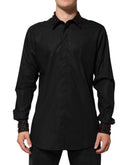 Dolce & Gabbana Black Cotton Embellished Collar Men’s Shirt
