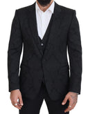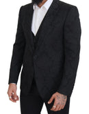 Dolce & Gabbana Black Floral Brocade 2 Piece MARTINI Suit