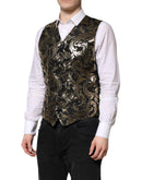 Dolce & Gabbana Black Gold Jacquard Formal Men Waistcoat Vest
