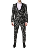 Dolce & Gabbana Black Gray MARTINI Jacquard Men 3 Piece Suit