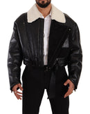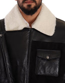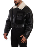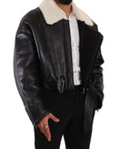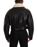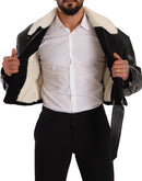 Dolce & Gabbana Black Leather Shearling Biker Coat Jacket