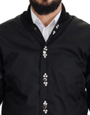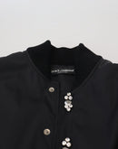 Dolce & Gabbana Black Nylon Crystals Coat Buttons Jacket