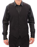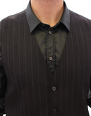 Dolce & Gabbana Black Striped Wool Logo Vest