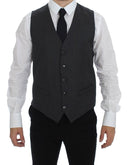 Dolce & Gabbana Black Striped Wool Single Breasted Vest