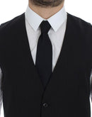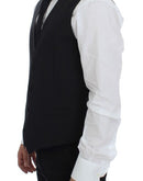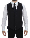 Dolce & Gabbana Black Striped Wool Single Breasted Vest