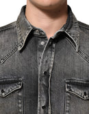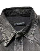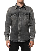 Dolce & Gabbana Black Washed Cotton Snap Long Sleeve Casual Shirt