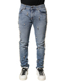 Dolce & Gabbana Blue Embellished Cotton Skinny Denim Jeans