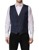 Dolce & Gabbana Blue Stripes Wool Formal Men Waistcoat Vest