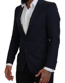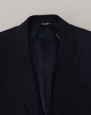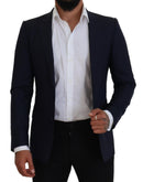 Dolce & Gabbana Blue Wool Slim Fit Formal Coat Blazer