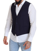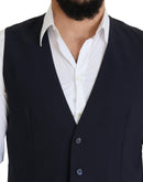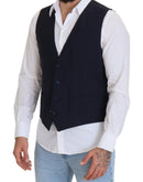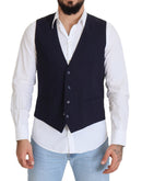 Dolce & Gabbana Dark Blue Wool Stretch Waistcoat Formal Vest