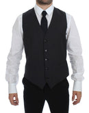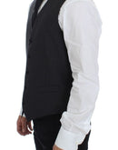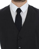 Dolce & Gabbana Gray Striped Wool Single Breasted Vest